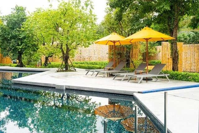 Strategic Planting: Include plants around your pool to create a lush, tropical feel or a serene, minimalist look. Choose low-maintenance, drought-tolerant plants that grow in your climate.