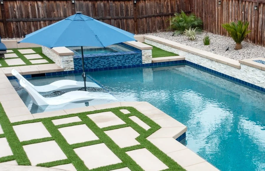 Integrated spa with spillway—efficient, elegant, and ready year‑round.